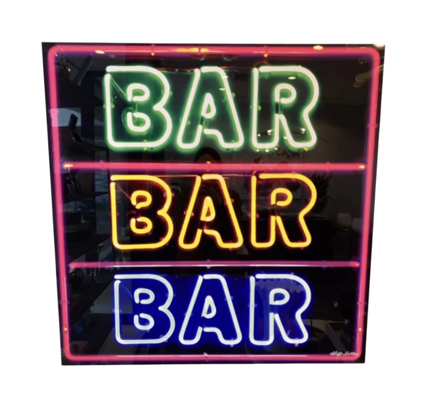 This piece is a must-have for anyone that loves to have a great time and add some excitement to their bar. Museum quality photography is printed on metal with a brushed metal edge signed by the artist. No detail has been overlooked, and the art seems to glow like actual neon.