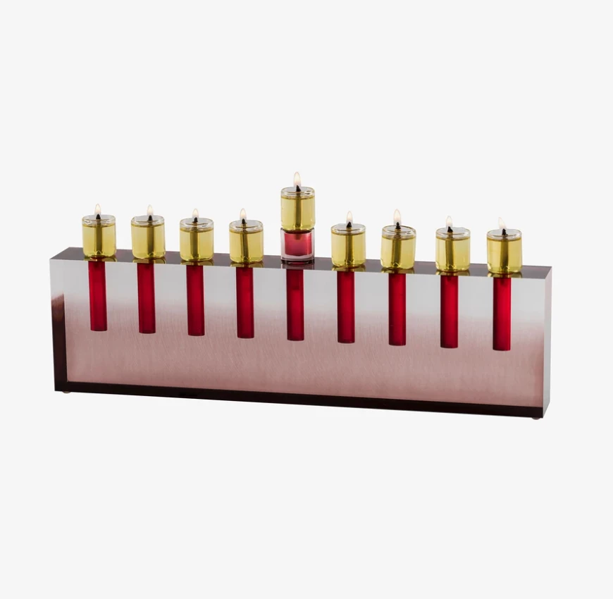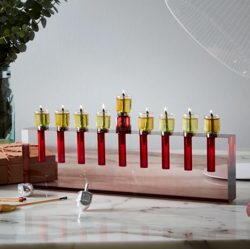 Let the light of the holiday shine bright with this attractive acrylic menorah.