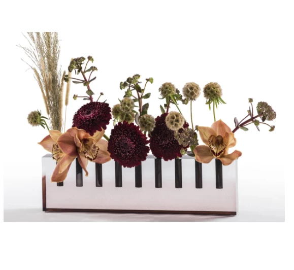When ready for use as a flower vase, simply remove the metal cups and store them in the beautiful storage box. Fill each hole ¾ full of water and arrange with flowers of your choice. We love using it as a centerpiece for Shabbat dinner.