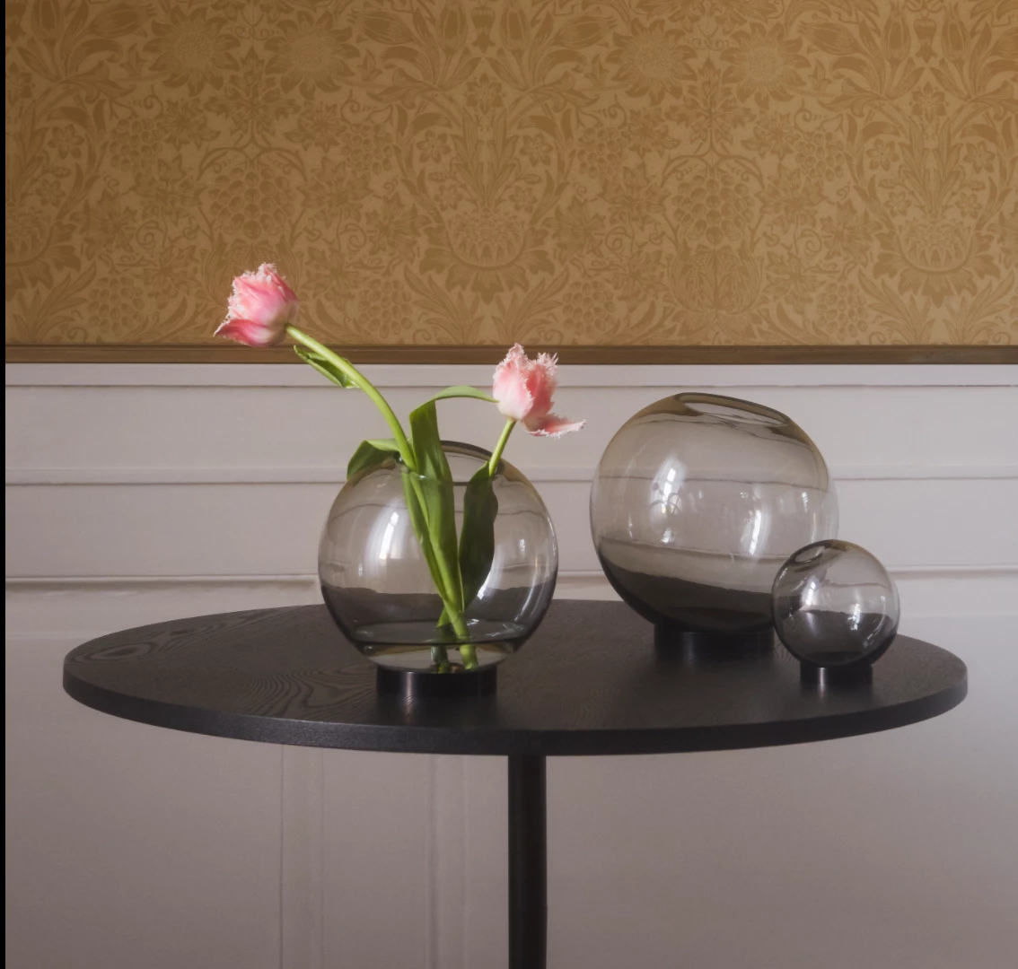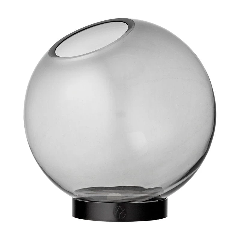 These sleek glass orbs float on a black base and come in 3 sizes that compliment one another. Use them for flowers on a table or as decor on a shelf.