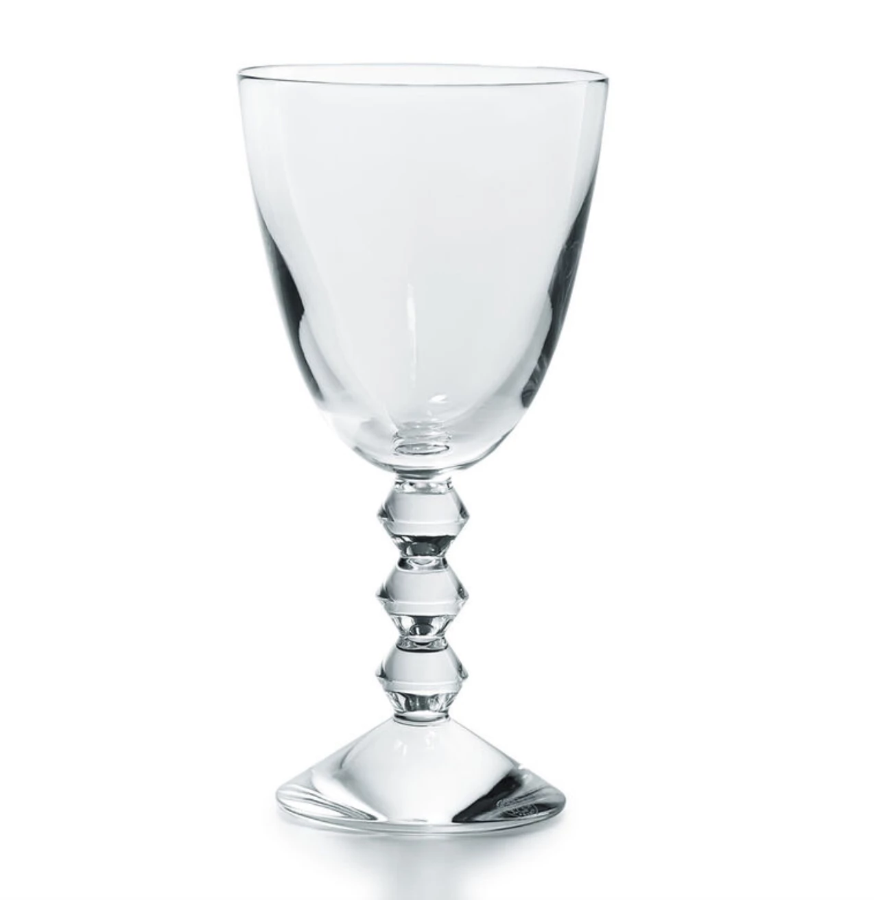 Designed for Baccarat by Savinel & Roze, the upper smoothness is juxtaposed with lower angularity: the curvature of the bowl contrasts sharply with the bevel-cut zigzag of the stem. The innovative form adds to the enjoyment of sipping a quality vintage. The Vega set also includes a champagne flute, martini glass, and other bar and tableware.