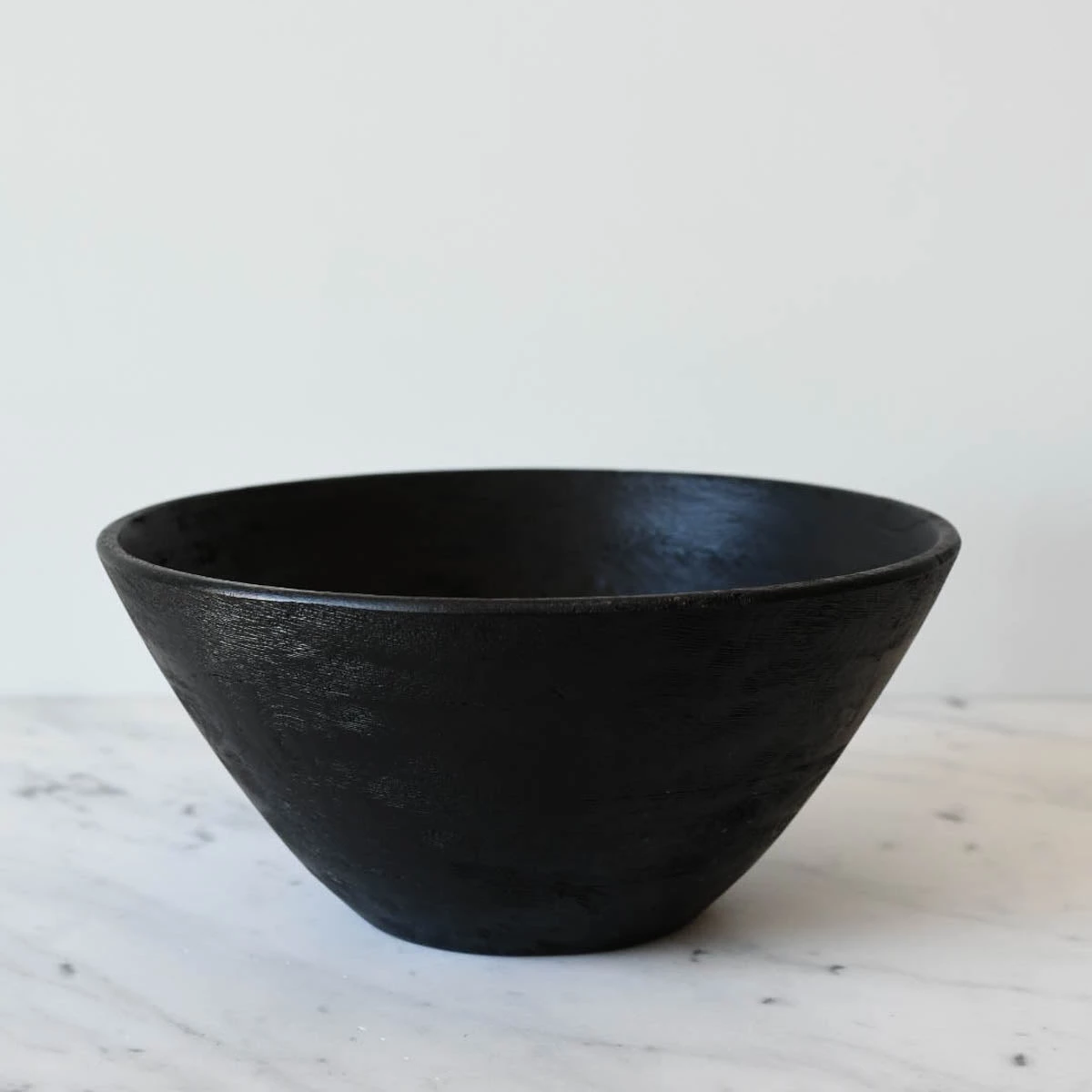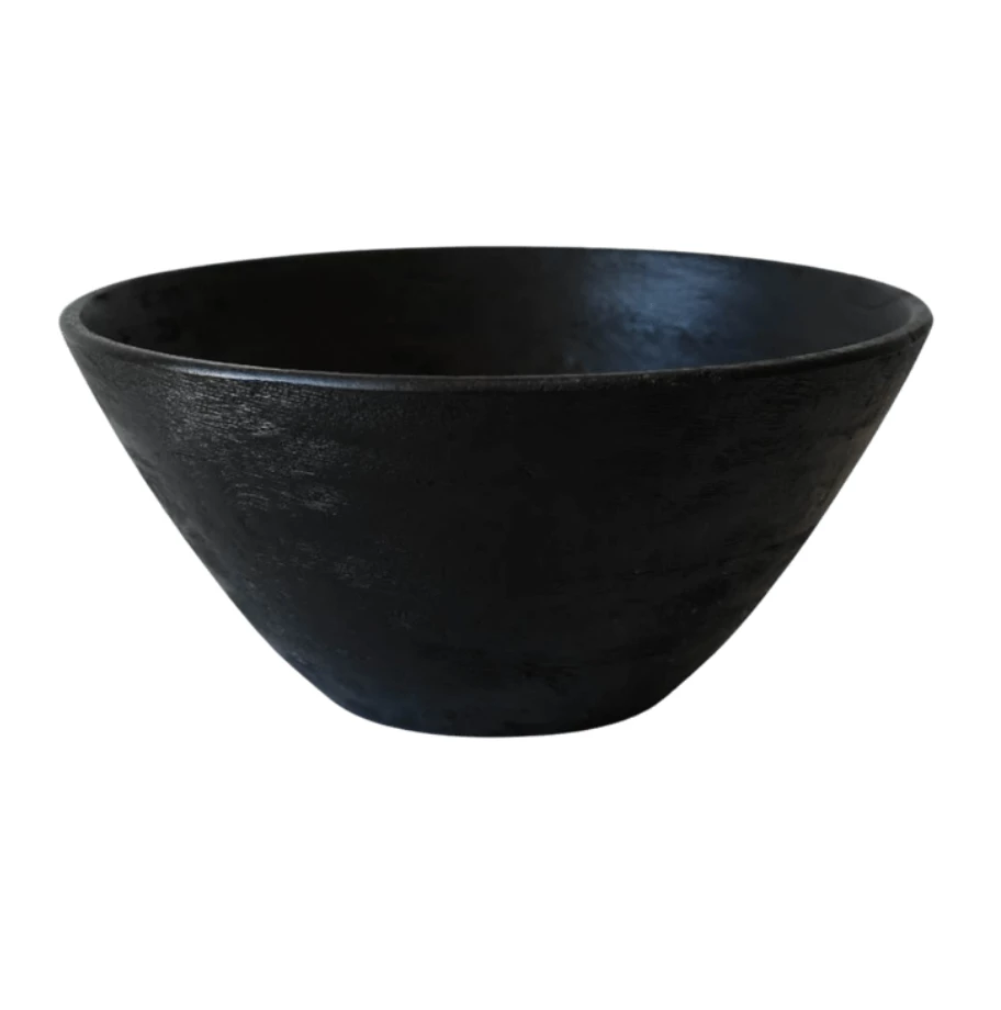 Rustic meets modern design with this black mango bowl that works well on an island or is a great size to serve salads or fruit. The hardwood bowl looks beautiful and is very durable.