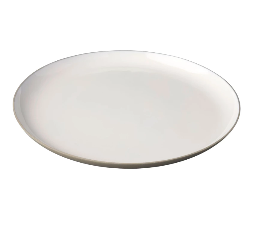 The platter has a modern design with and enamel inside and matte dove gray outside. Great for serving or add the matching mini bowl to create a wonderful platter for veggies and dips. Makes a great hostess gift. Mini bowl sold separately.
