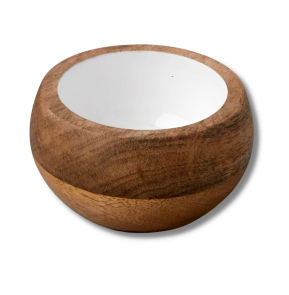 The Food Safe Mango wood and enamel pieces make great go to pieces for summer entertaining! The handcrafted bowls and platters are made of natural mango wood and boast a crisp enamel interior. The wood dipping bowl is great to pair with our larger pieces for easy entertaining.
