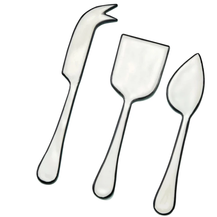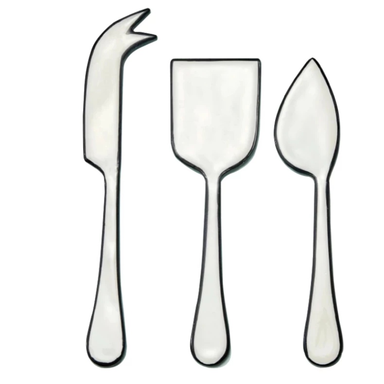 The perfect set for the person that loves something unique. The crisp white enamel pieces have a dark charcoal grey making them a stand out collection.