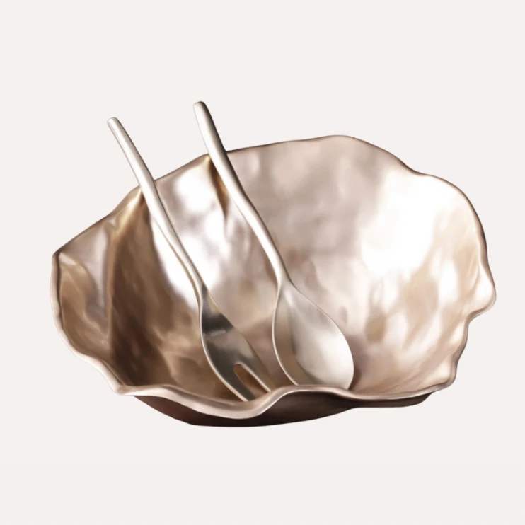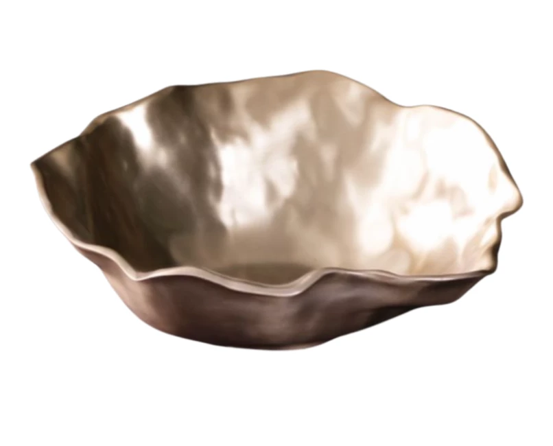 The Luxe Sierra Modern Collection has a beautiful velvety gold finish. Handmade by skilled artisans the modern metallic finishes are easy-care and practical making the collection a go to for serving daily. Decorative but functional, the large Maia bowl will be the center of attention wherever it is placed.