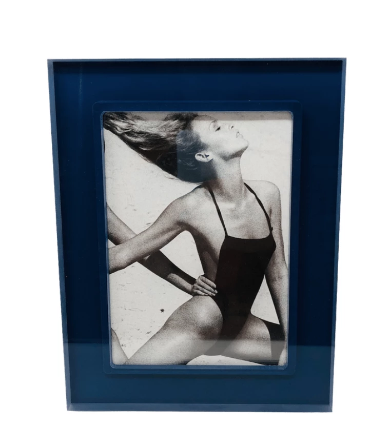 Our most popular selling frame has a very clean modern edge with back painted acrylic edge, allowing the focus to be on your beautiful photo. Museum quality backing and easel for table top display.