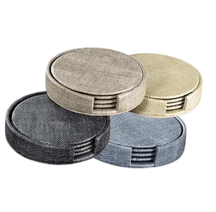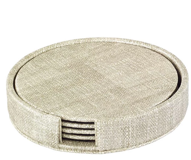 These coaster sets come in their own holder and have felt on the bottom to avoid scratches.