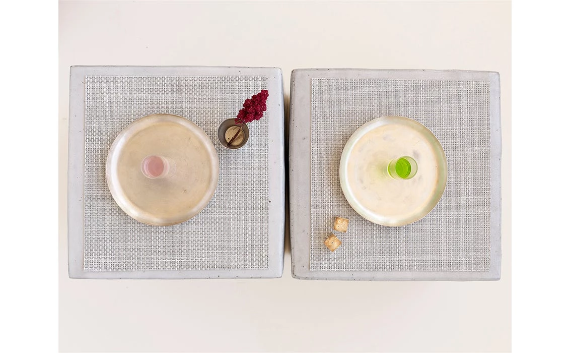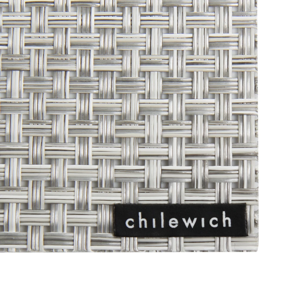 Chilewich is the perfect placemat for indoor or outdoor use. The basketweave pattern has a mix of silver & white