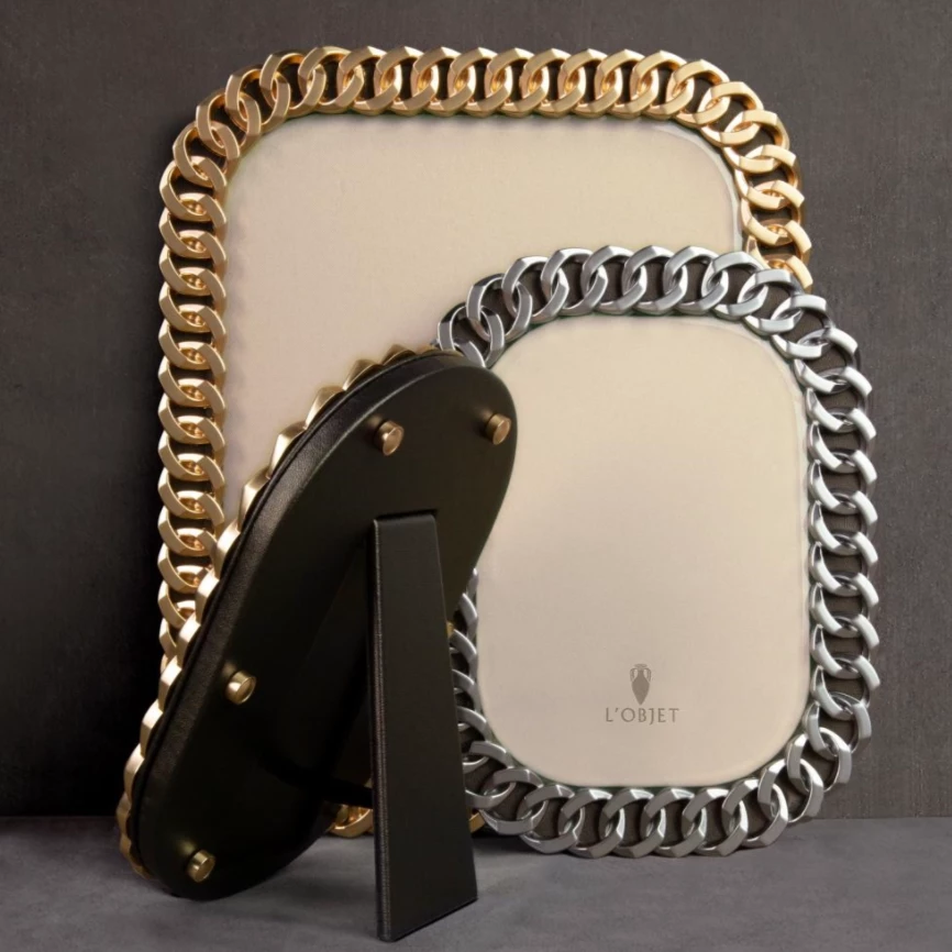 The Cuban Link frames are elegant and refined with an art deco character. It’s the details that count: 24K gold plated surrounds, a bevelled glass front, satin lining and a leather back.