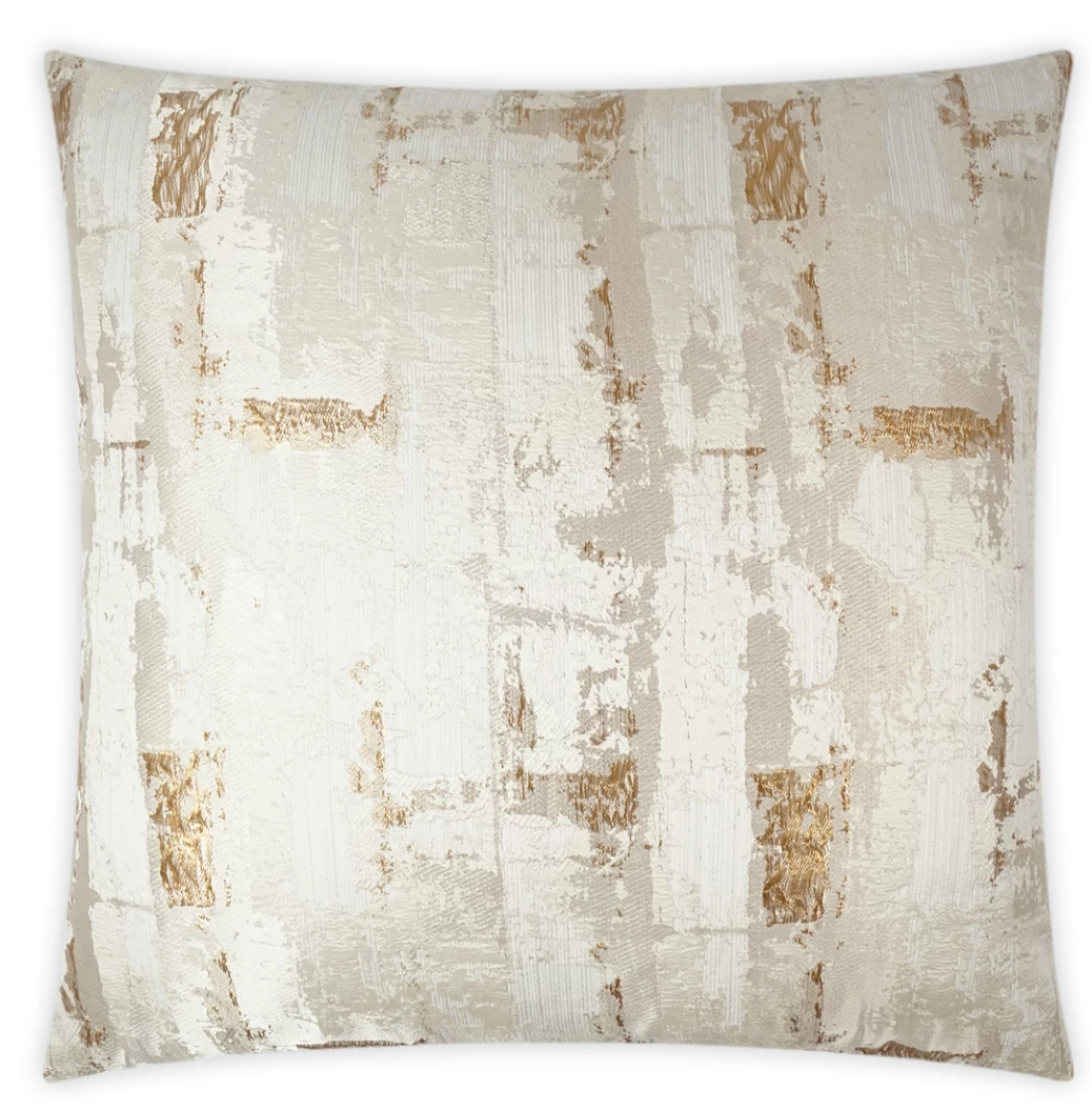 This pillow has an abstract design with subtle gold accents throughout the pattern.