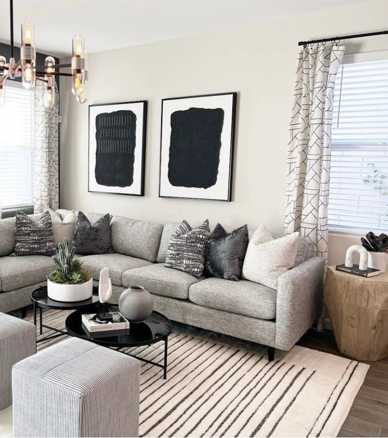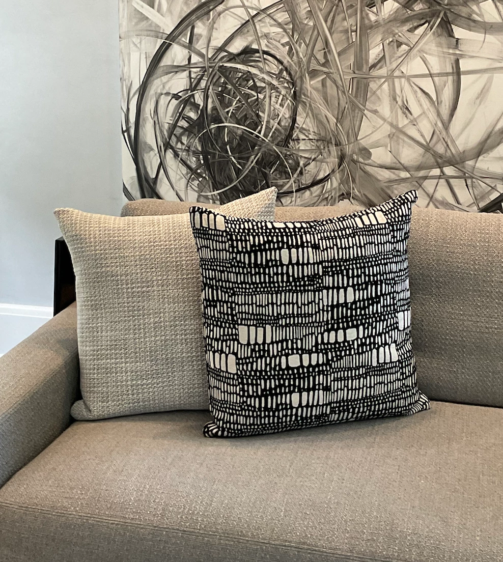 A woven delight, is pillow has a beautiful black and white colorway & feels super soft and very family room friendly.
