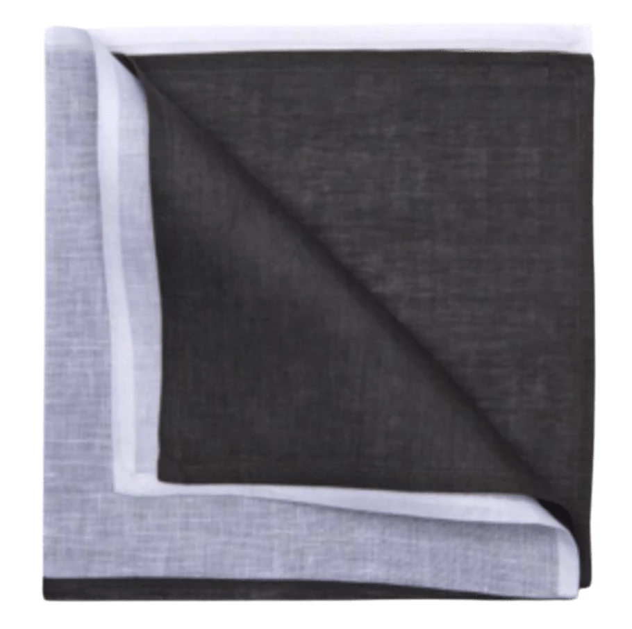 A fine linen napkin that offers a unique mix of grey and white in one napkin. One half grey one half white it creates an interesting mix when in the napkin ring.