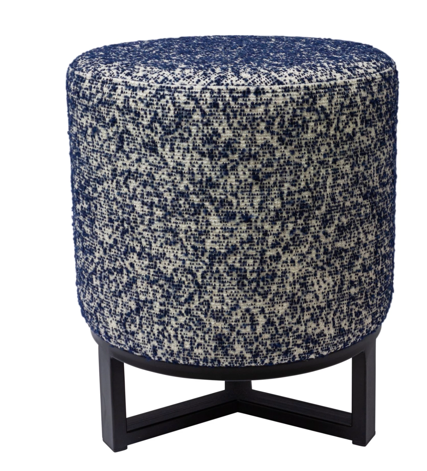 There is always room for more guests with the Flint Blue Stool. The intricately designed and woven fabric is in a shade of is blue and ivory. The stool has a rounded, contemporary shape and unique black iron legs which make it a stand out piece alone or when used as a pair.