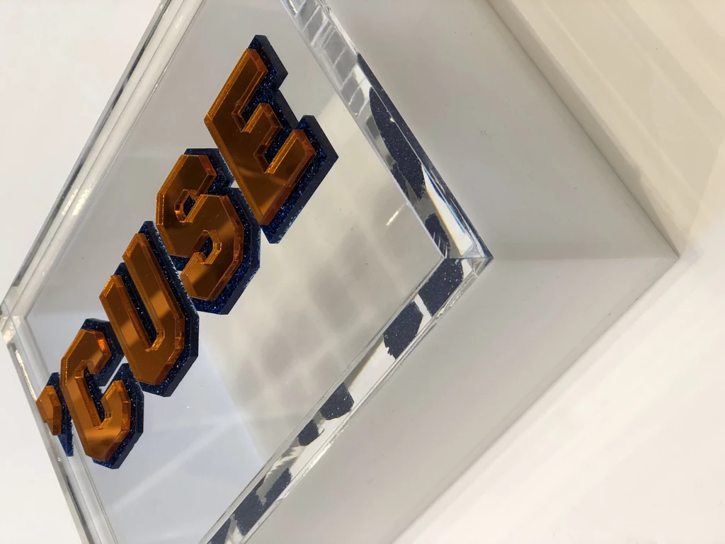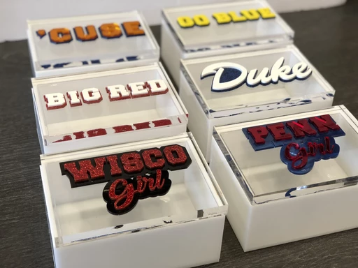 These are an exclusive offering from EYE CANDY by CURRENT HOME. The fun acrylic, glitter & mirror boxes are the perfect way to show your school spirit or an excellent gift to say congrats to grad!