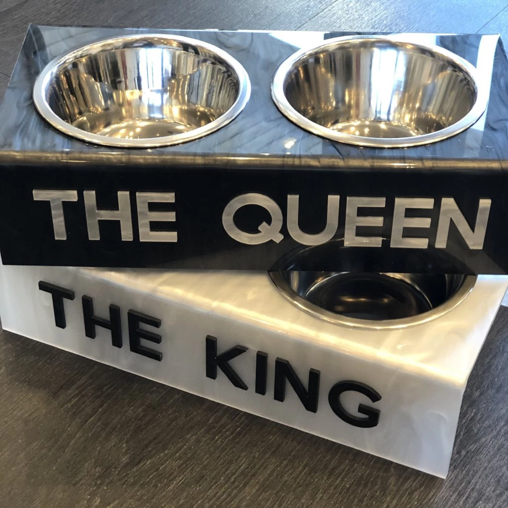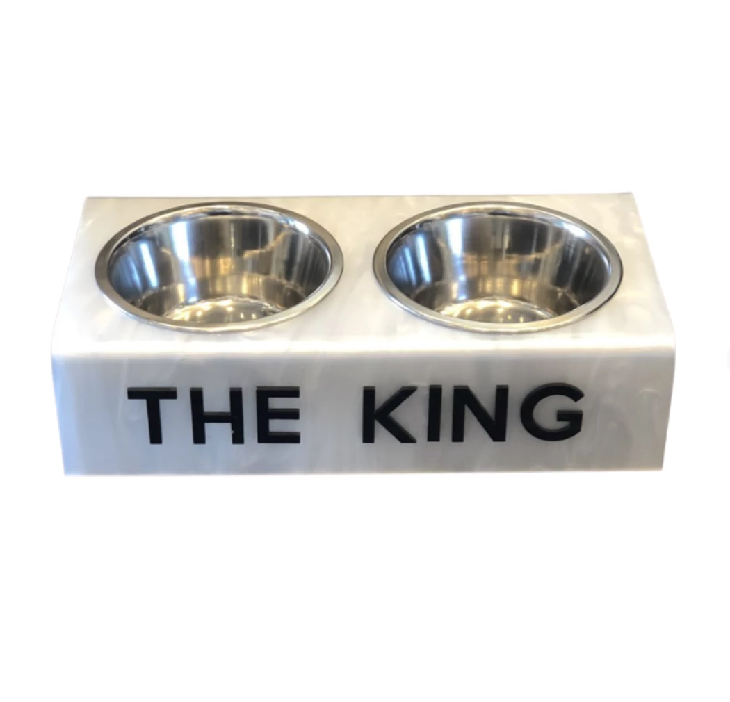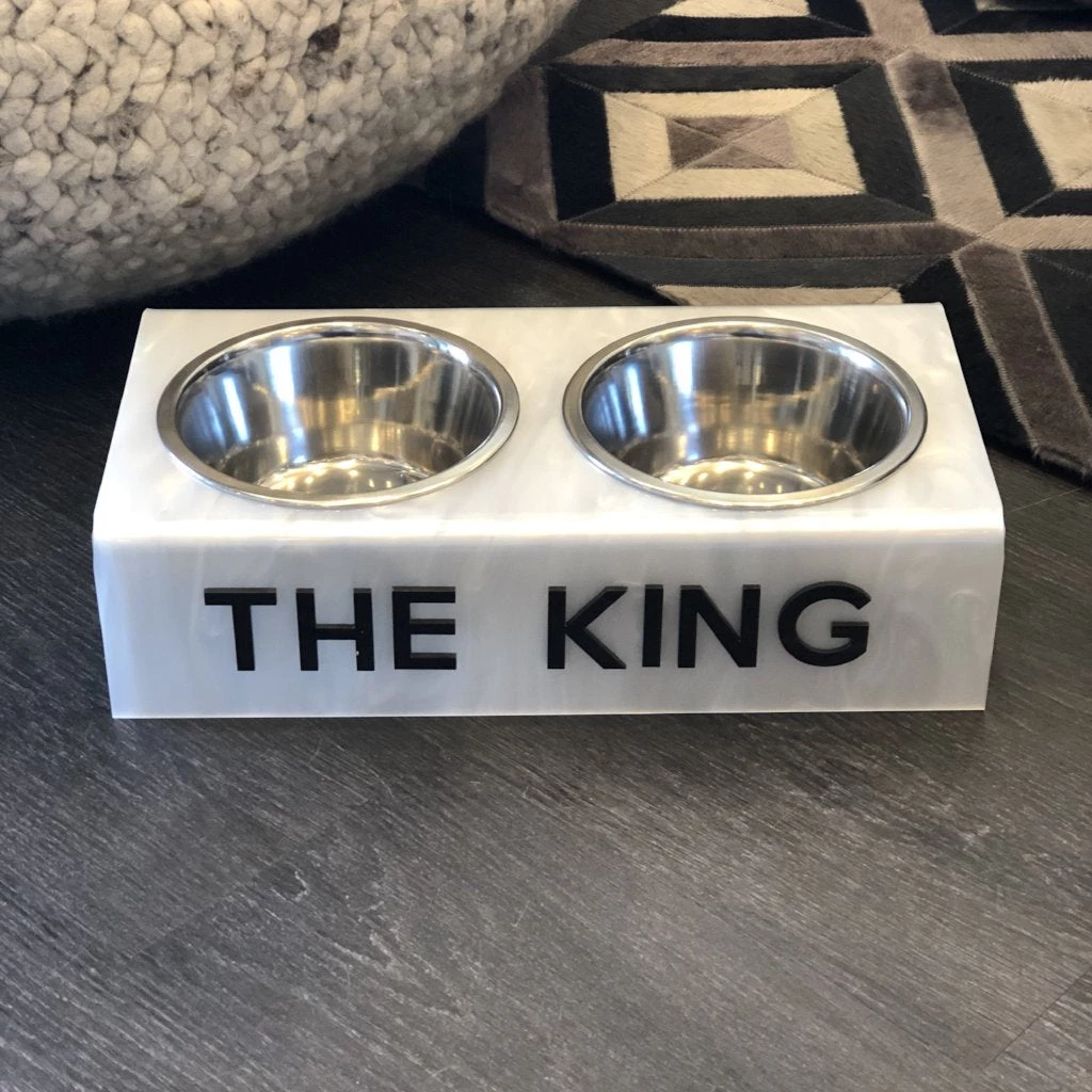 Treat your dog like the King he is with these acrylic marble dog bowls.