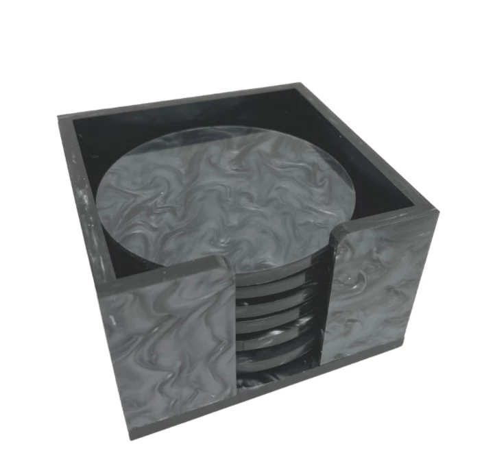 This set of coasters is an elegant and beautiful way to accessorize your bar and protect your furniture while serving your favorite drinks. Makes a great hostess gift!