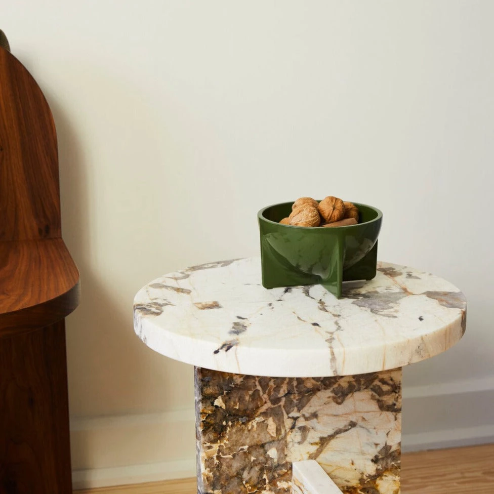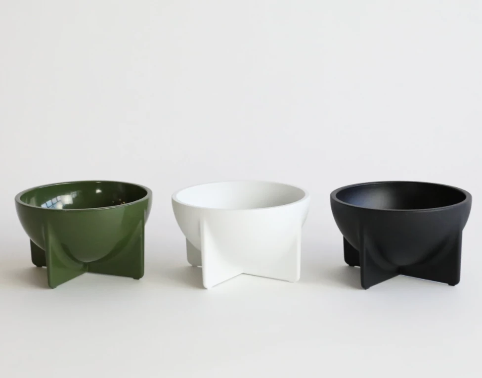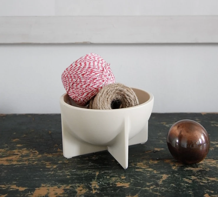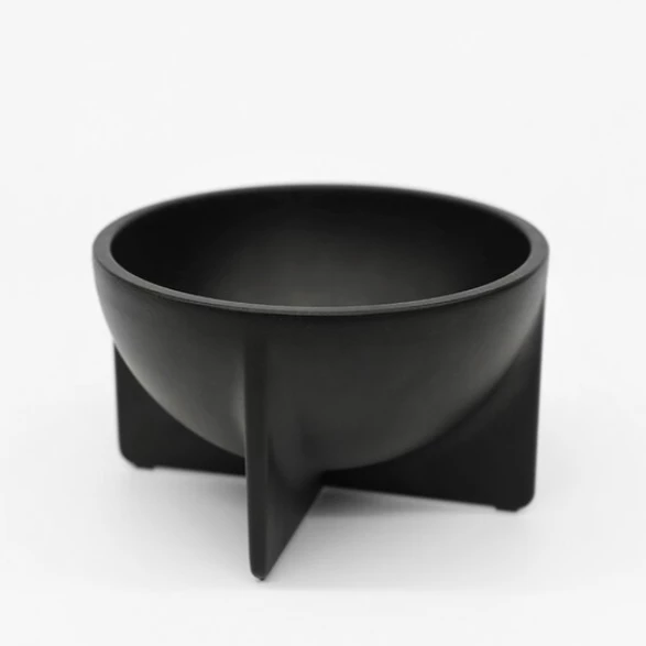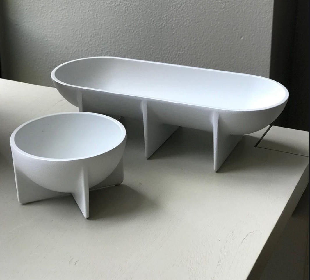 A die cast aluminum bowl with architecturally-inspired legs that elevate its contents to centerpiece status. Each bowl is powder coated with a slight textured matte finish to catch the light and add a unique feel to the space it inhabits.