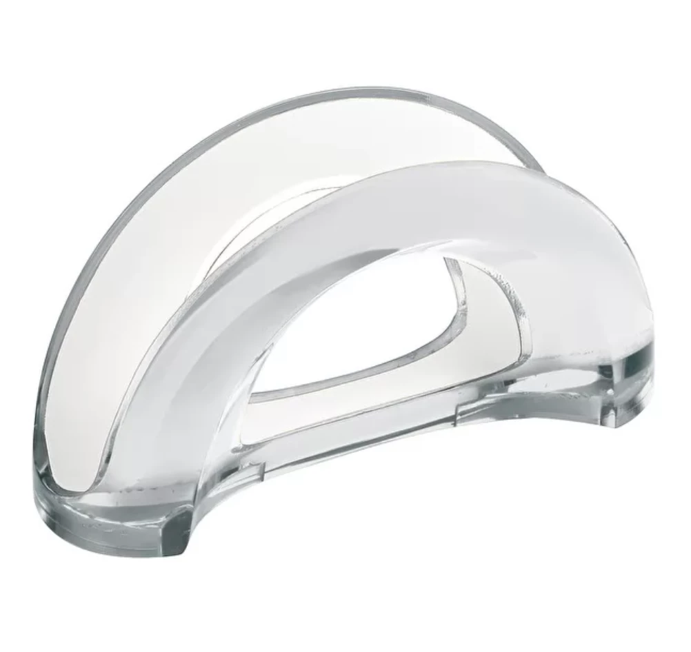 Our best selling summer accessory is this vertical napkin holder that is made of acrylic, With soft lines and a mix of white and clear acrylic it looks great in any space.