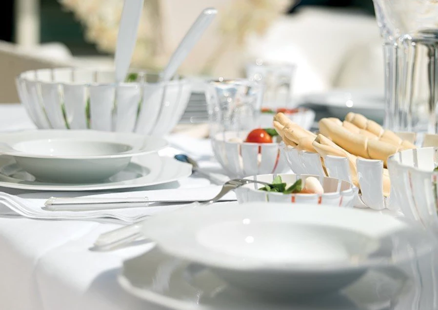 A CH favorite! These acrylic bowls are fun and great for indoor and outdoor entertaining. They have a glossy white material on the inside, and a mix of white and transparent slices through the bowl creating a unique effect. Ideal for salads, chips, side dishes and more.
