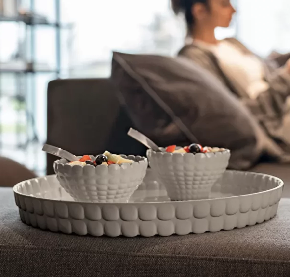 The Tiffany serving cup has a modern scallop edge and an be used for serving everything from ice cream to dips and sauces when added to a Tiffany Tray Made in Italy. Scoop up a few – we promise you will use them all the time!