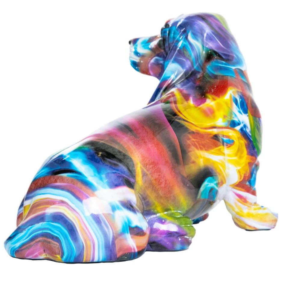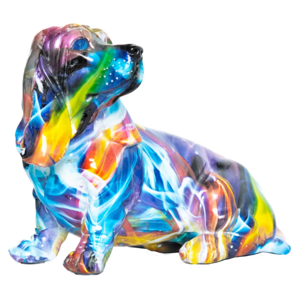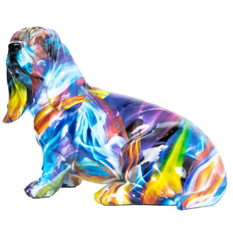 A beautiful spectrum of color gives this artistic basset hound sculpture its unique depth and feel.