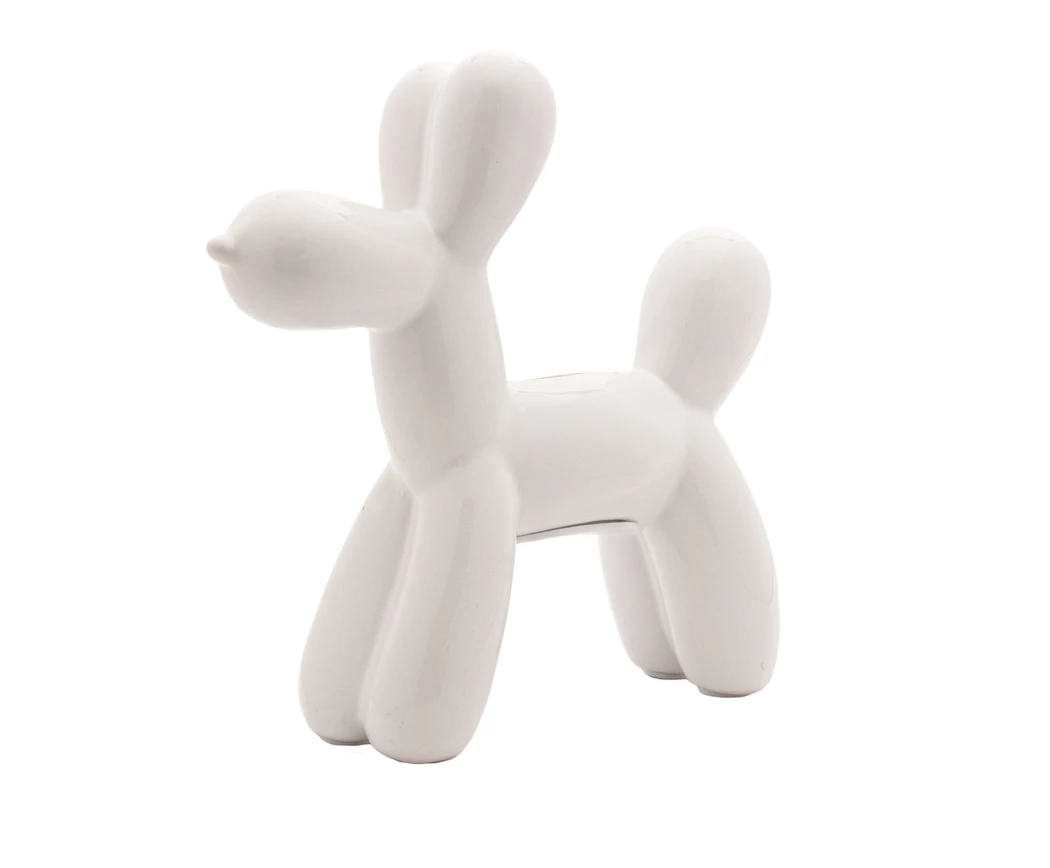 A mini version of our best-selling balloon dog bank. The small size makes them perfect to mix or match with other mini and larger versions. Grab a few, and set them in front of a choice backdrop or painting and create a fun, eye catching display on a shelf.