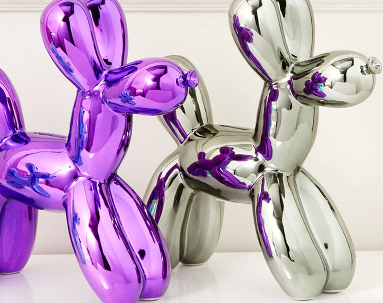 This Jeff Koons inspired piggy bank makes everyone happy. Our customers love to use it as a sculpture mixed and matched on shelves or it can be used to store your coins.
