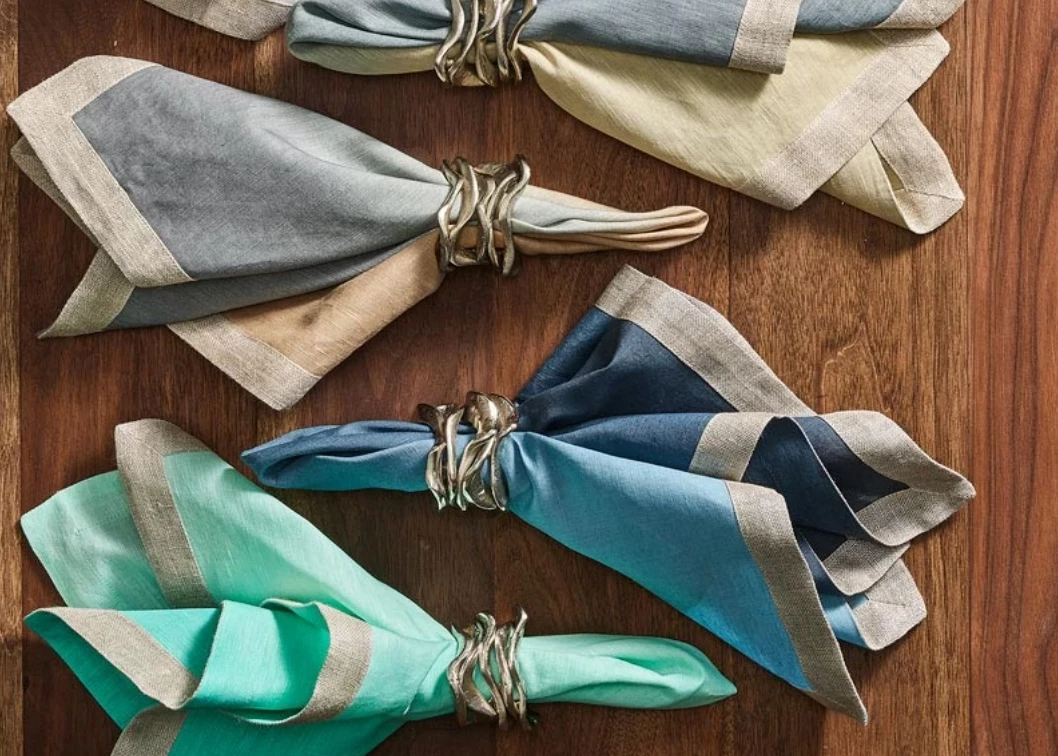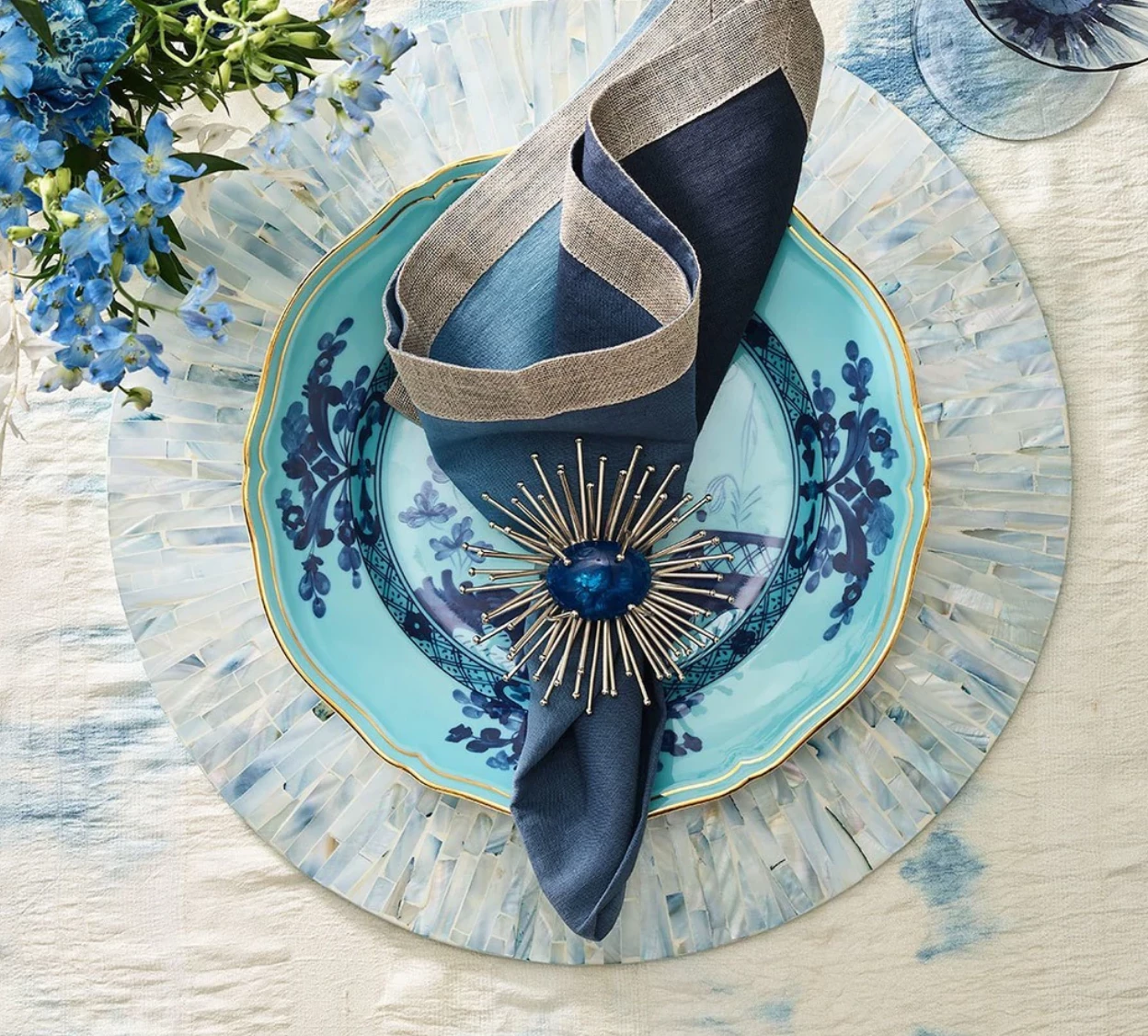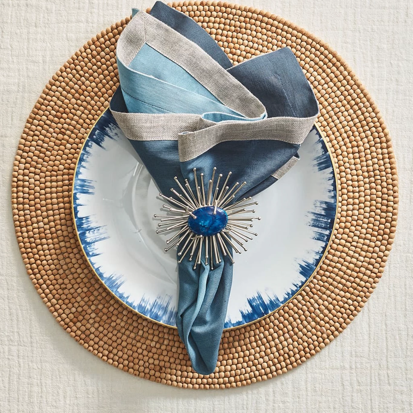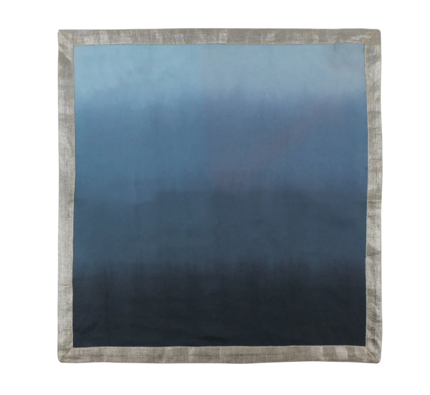 Nothing says summer more than our beautiful ombre Dip Dye Napkin in navy and blue. They are hand dipped and dyed, accented with a metallic foil facing edge that makes them casually sophisticated.