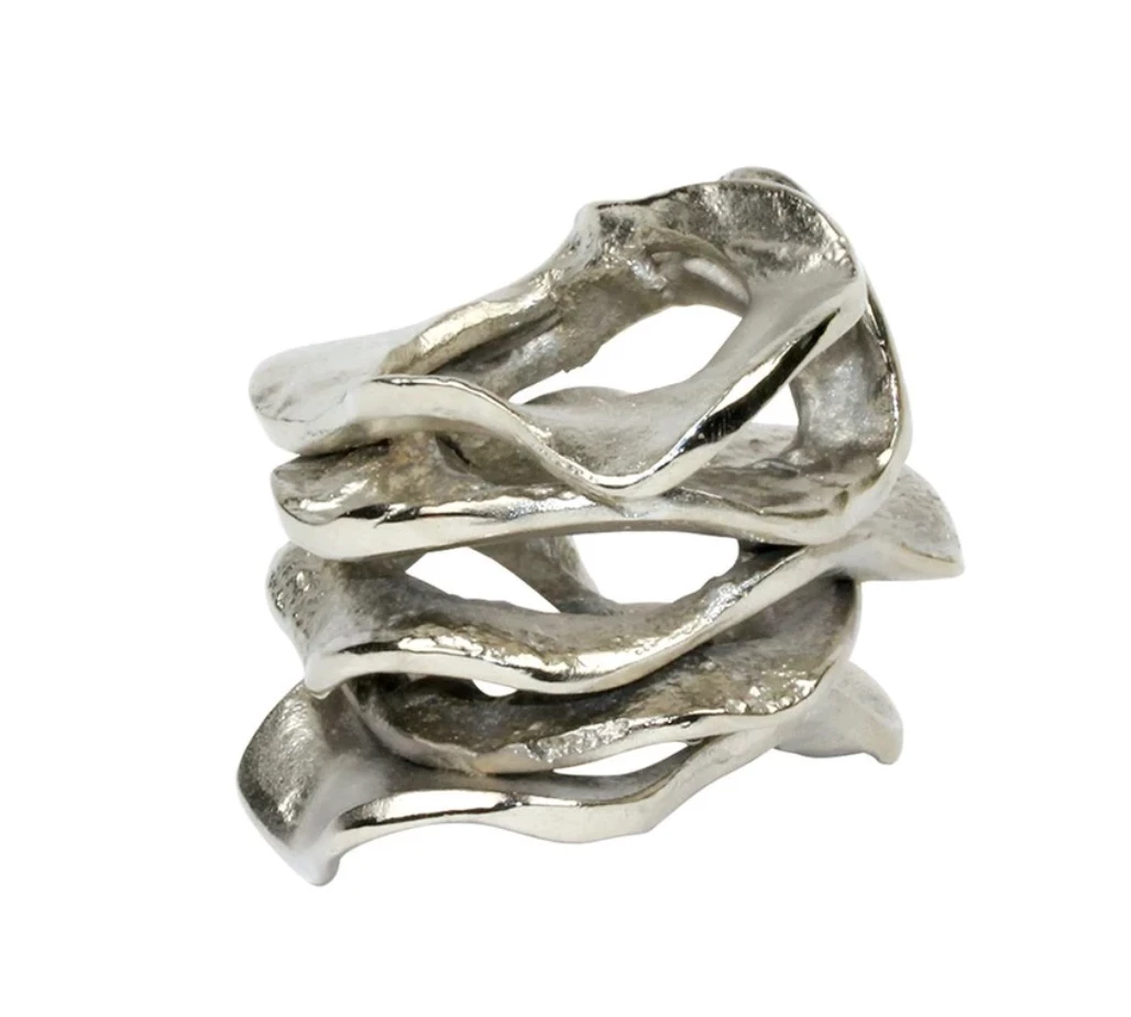 The Flux Napkin Rings will take any table from ordinary to extraordinary in a heartbeat. The elegance and charm of these silver napkin rings will add a bit of flourish to any place setting with ease. T
