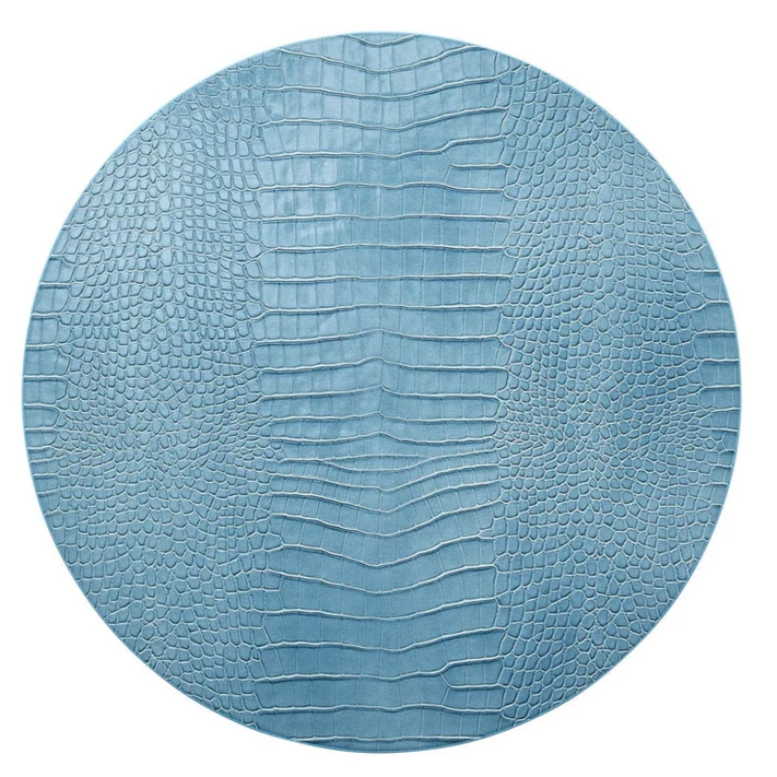 The round embossed faux Croco Placemats are the perfect staple. The organic yet sophisticated crocodile pattern in Charcoal works in any season. They are easy to care for; simply wipe down before storing.