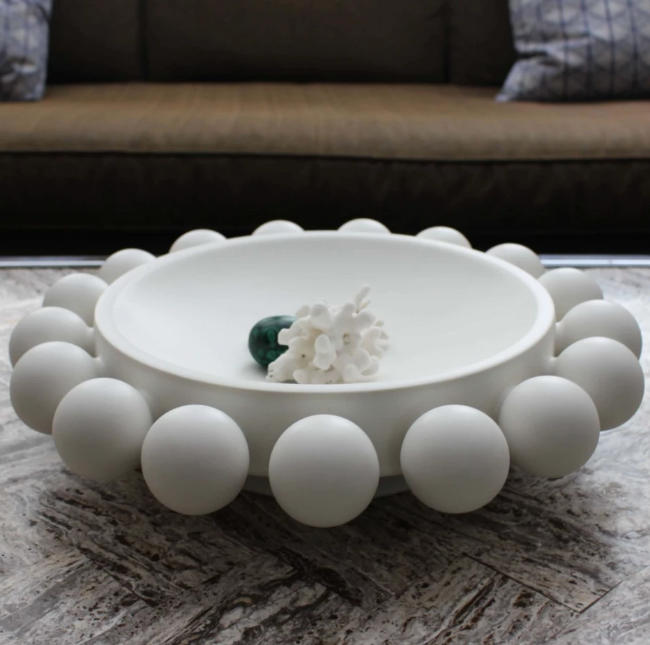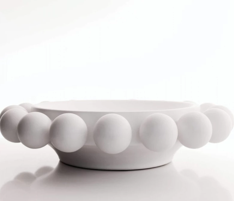 The halo bowl is a favorite in the hand made nimbus collection! The cloud-like, hand-appliqued, vessels are brimming with “blooms.” They make a bold statement on a console or cocktail table or dining table.