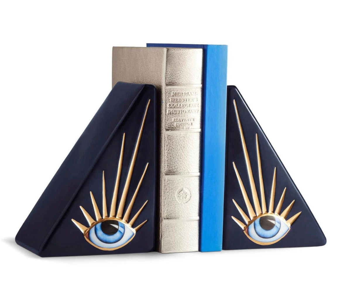 The Lito Eye Bookend, by L’Objet, is a surrealistic “talisman” of good luck and a traditional symbol of protection, the eye serves as a constant reminder to be aware, to dispel negative energy, and to seek beauty in the everyday. Whimsical and surreal decorative objects are handcrafted in porcelain with 24-karat gold plating and inlaid with resin details. Use them alone or as a pair.