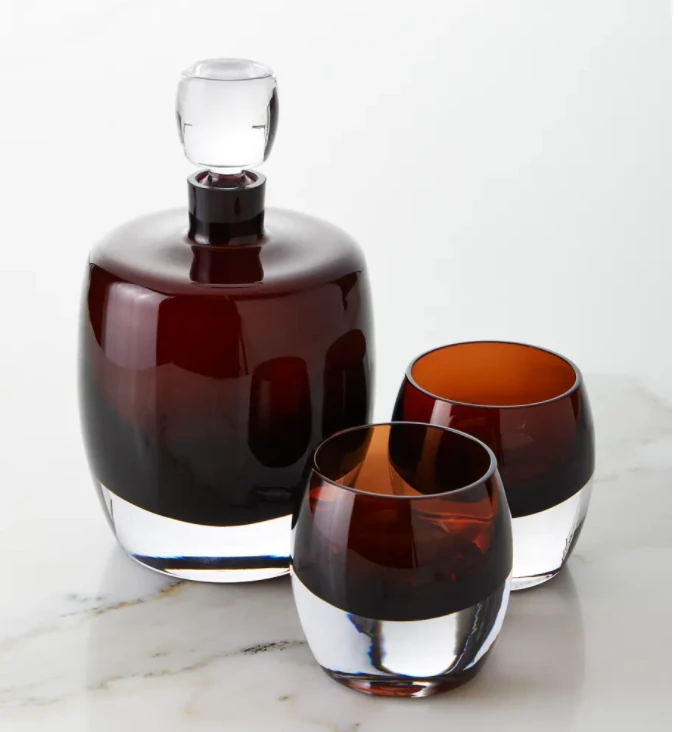THE HANDBLOWN DOF GLASSES ARE HANDSOME AND HAS SUBSTANTIAL WEIGHT. MATCHING PIECES AVAILABLE.