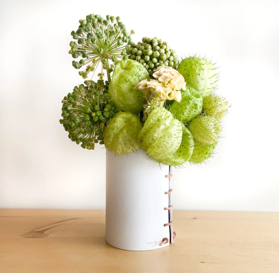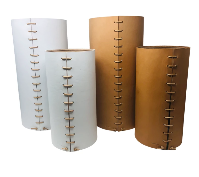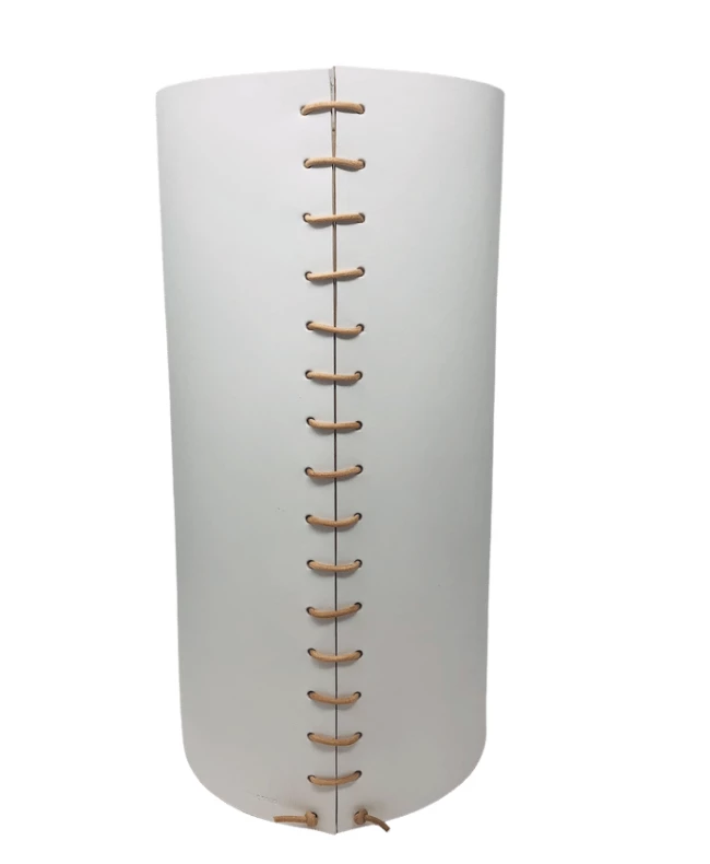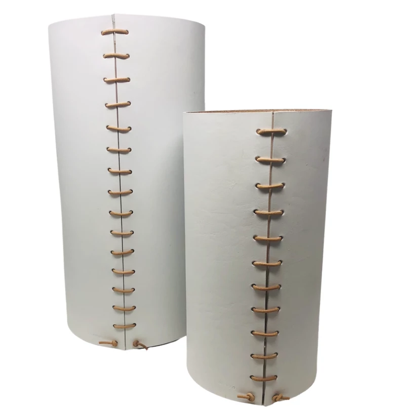 White Enamel Leather Surface. Allows for easier cleaning and water resistance. Natural Leather Cord Lacing