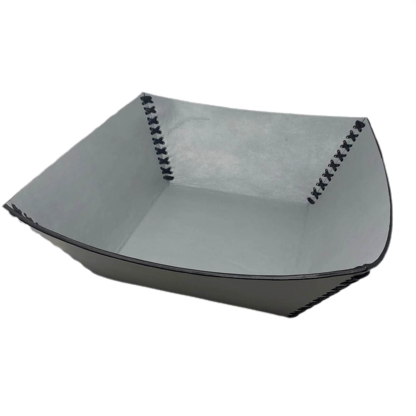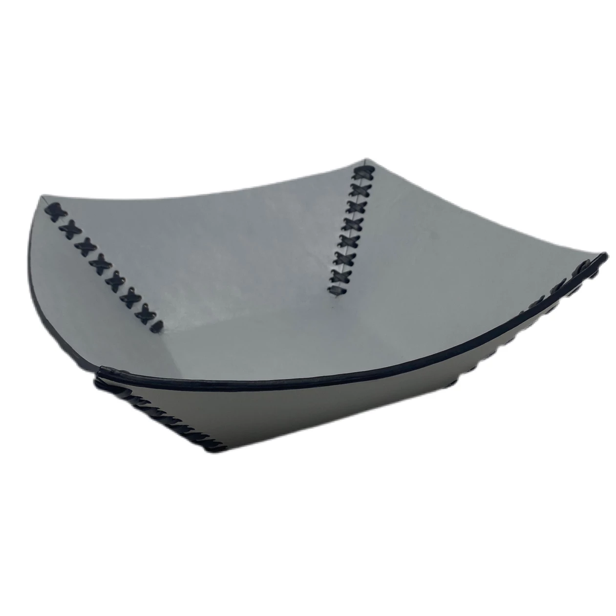 Better together, these luxurious, handcrafted leather trays have a contrasting cowhide black stitch that highlights the beautiful shape. Place them nested on a table or use them separately as a catchall on a cocktail table.