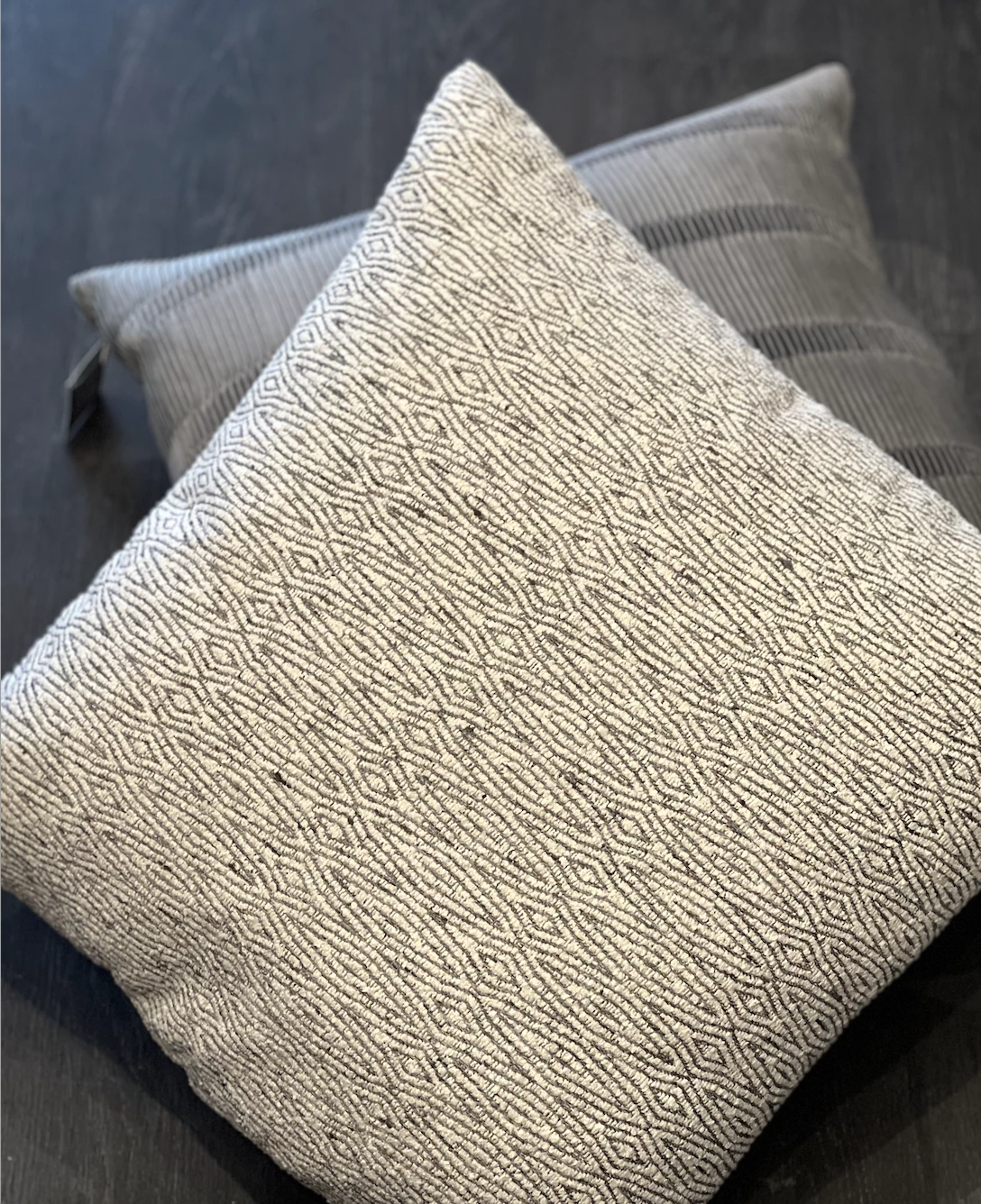 Handmade with high quality craftsmanship, it has beautiful woven texture with shades of ivory and grey metal tones.