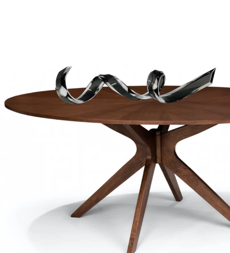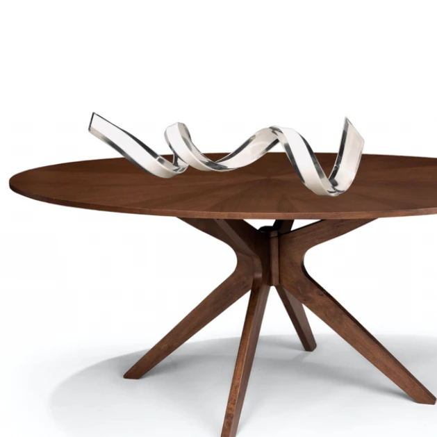 The Ribbon Sculpture is made from the highest quality lucite. It has a long sleek design with color running through the lucite, creating a modern and striking look on a shelf or dining table.