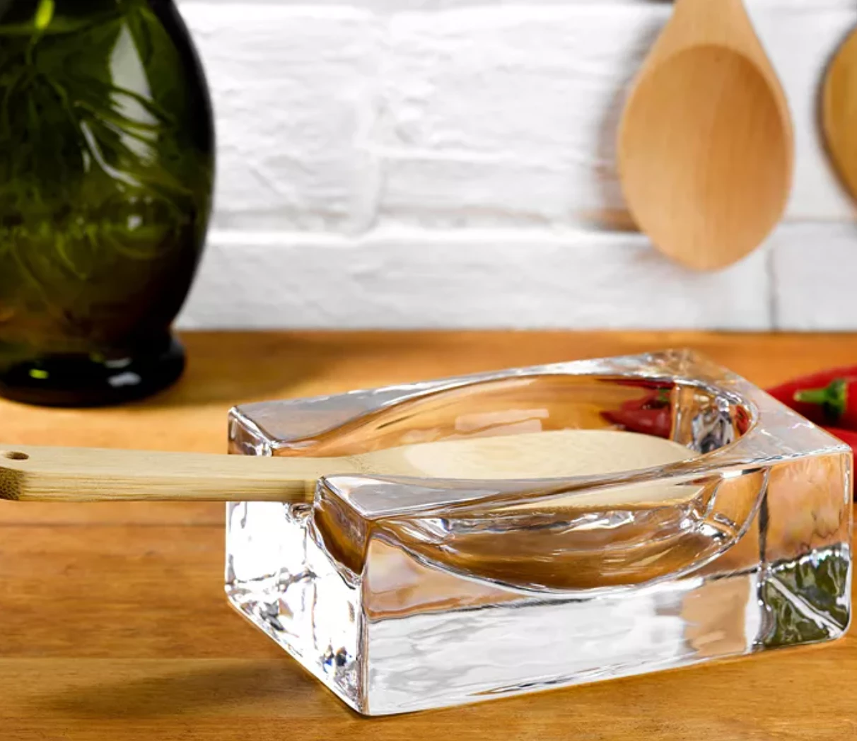Simple and functional, this glass spoon rest keeps things neat while preparing meals and is pretty enough to leave out.