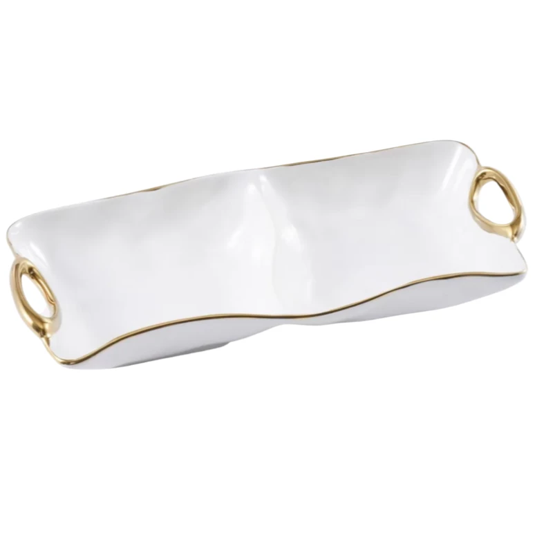 - High Fired Porcelain Serveware with Silver Titanium Trim