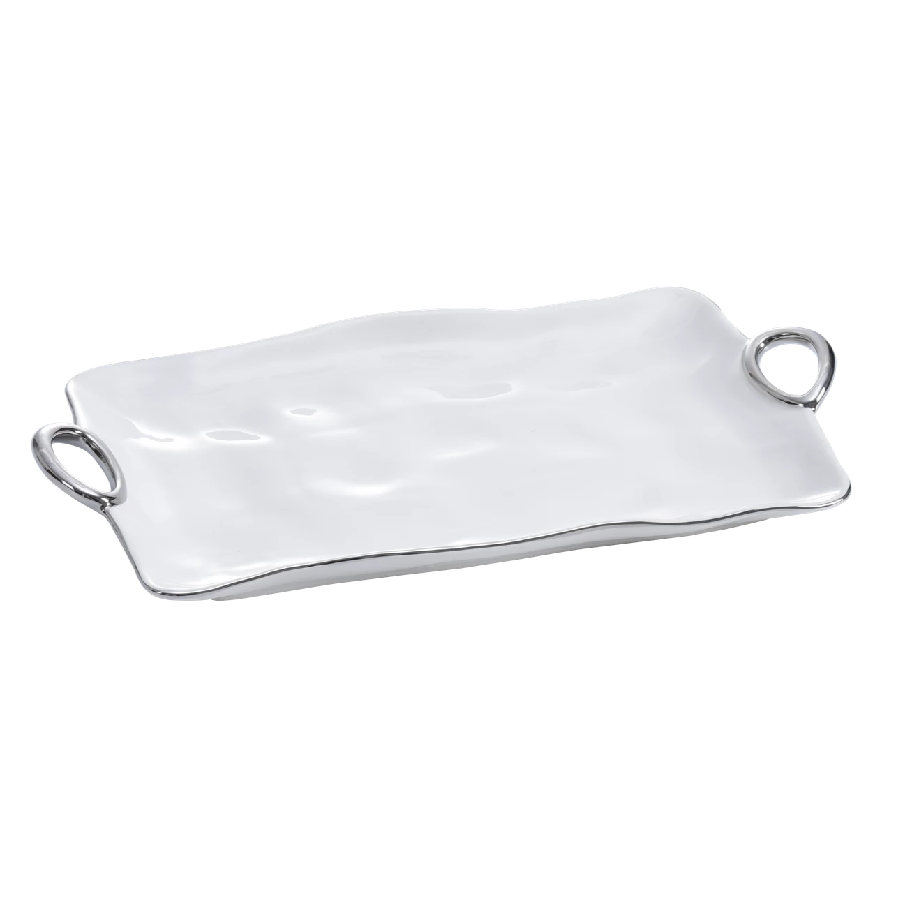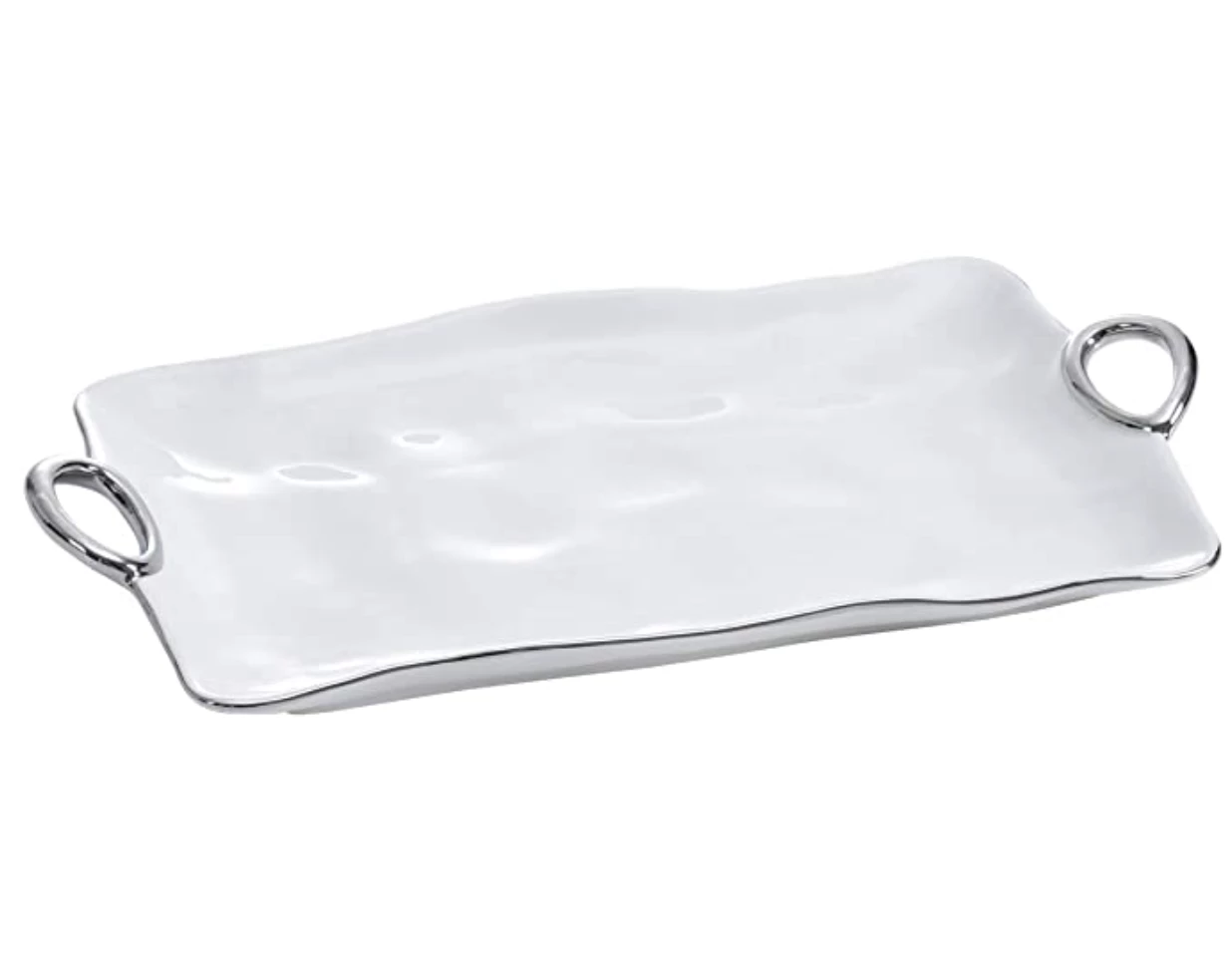 A stylish way to serve for casual meals or at a dinner party. The handle collection is a porcelain dish with silver accents that can go into the oven up to 300 degrees to keep food warm and can be put in the dishwasher, making clean up time easy. Matching pieces are available. Add a mini bowl for sauces when serving