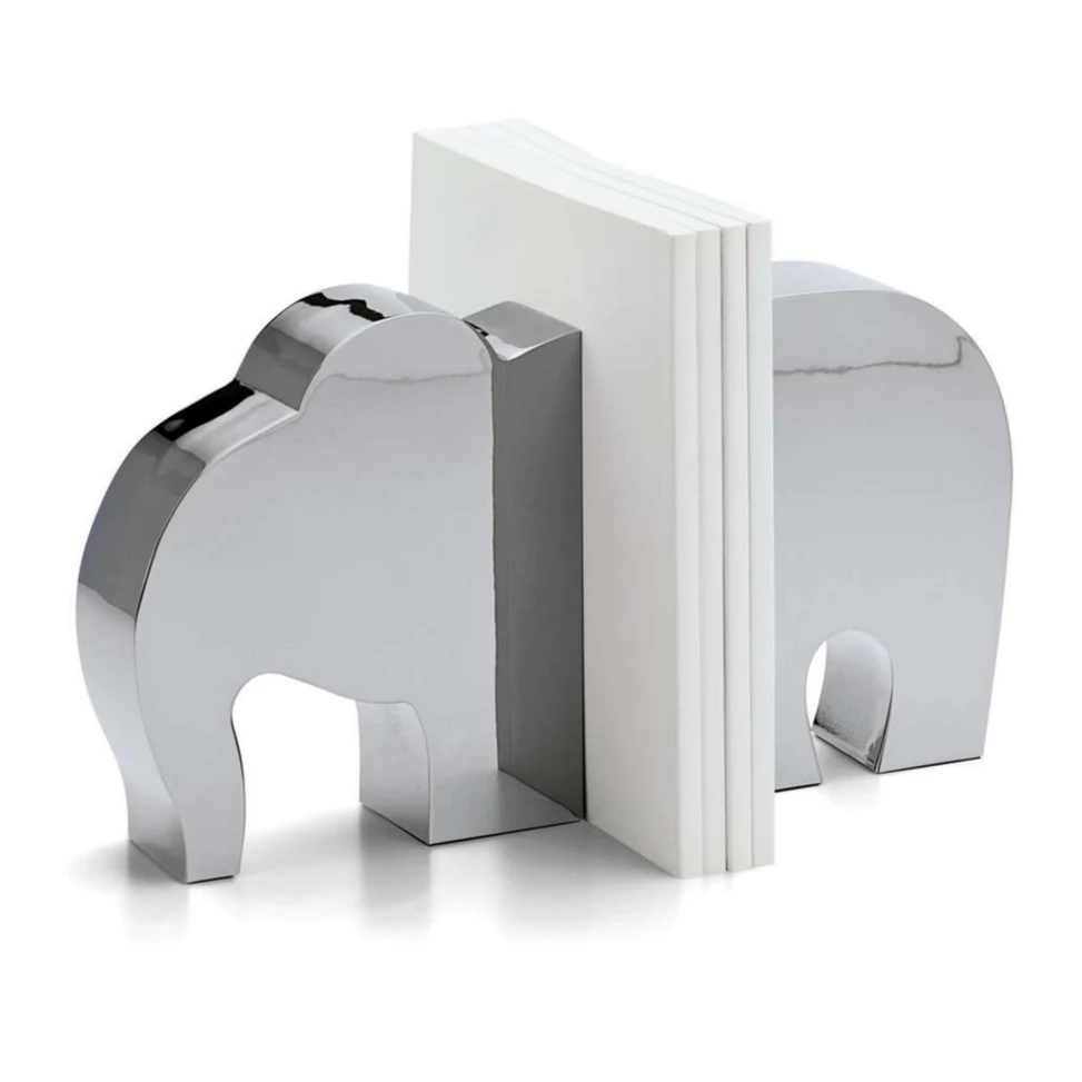 These pretty elephant bookends look great on a shelf or a bedside table. They are made of polished nickel and consist of two parts that come together to create an intriguing design. They make a perfect gift for a bookworm.