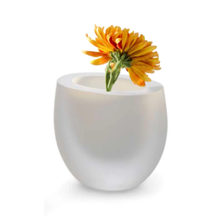 These small glass art vases are very large on style. With overlay glass and a frosted surface that is perfectly hand-ground & polished, they are great for use as a vase or as a container for snacks.