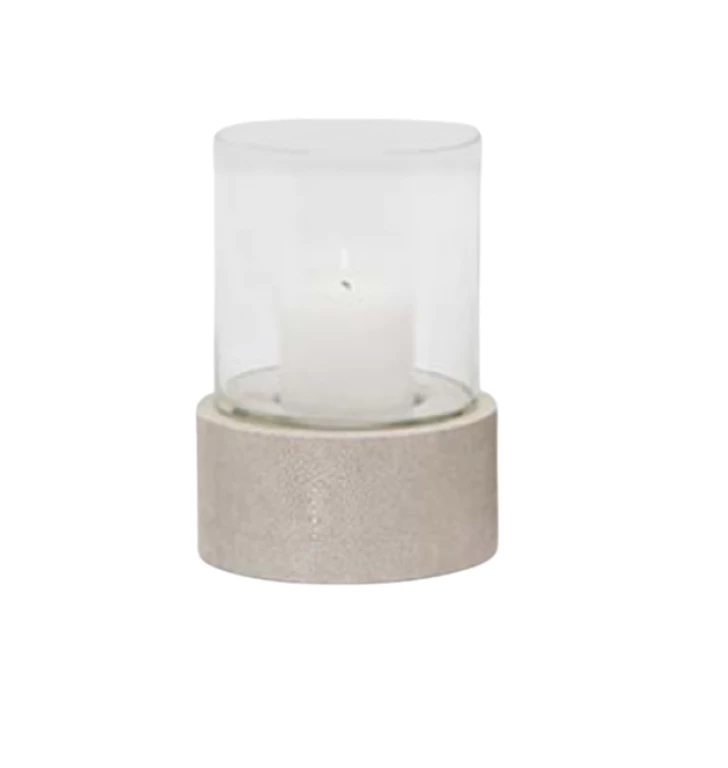 Set the mood with these realistic faux shagreen hurricanes. They are the perfect accent for indoor or outdoor entertaining as well as a decorative statement on a console or coffee table.