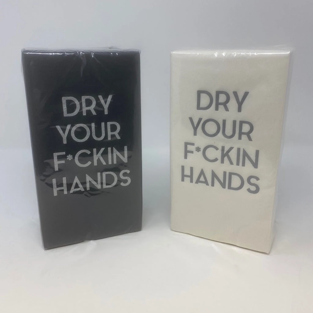 A CH Exclusive, and we aren’t messing around! Remind everyone to wash and dry when they are in you home. These fun, disposable guest napkins are sure to get the message across. Now available in two color ways: Black w/ Silver and White w/ Grey.
