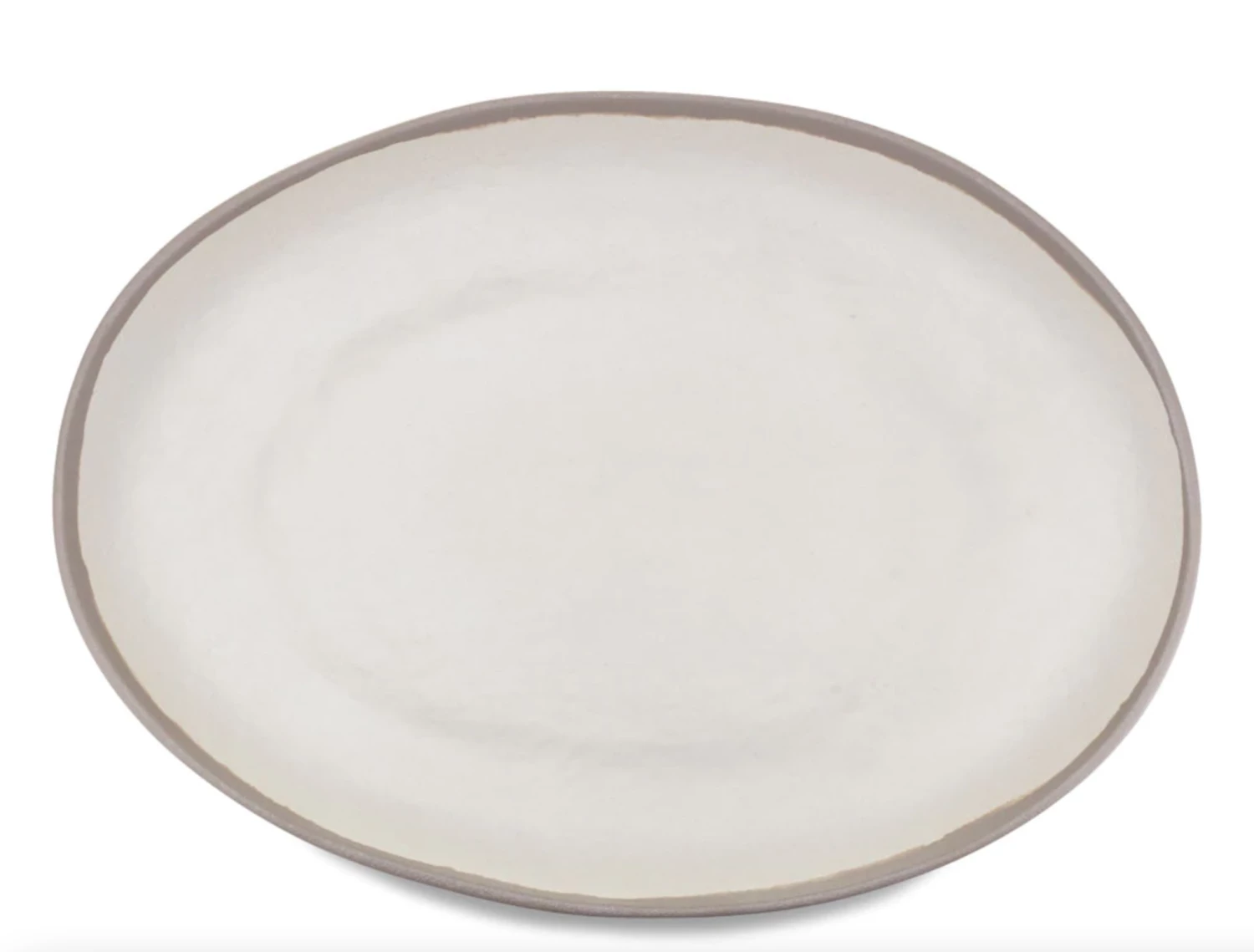 Our Potter large oval gray platter has a beautiful texture that anyone would mistake for artisanal pottery. Add the dip bowl to make an excellent serving duo