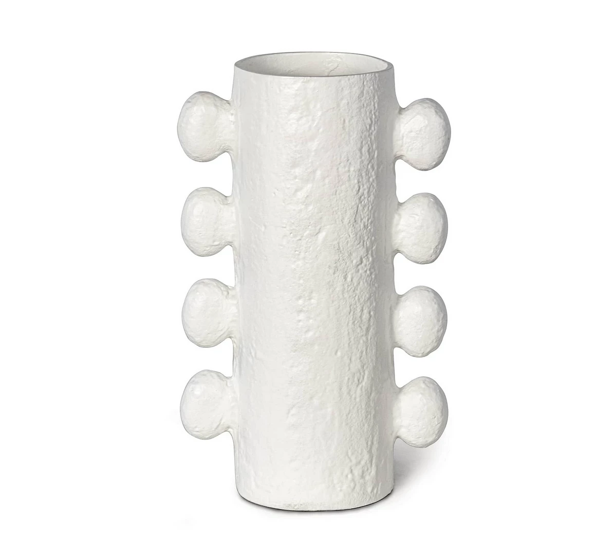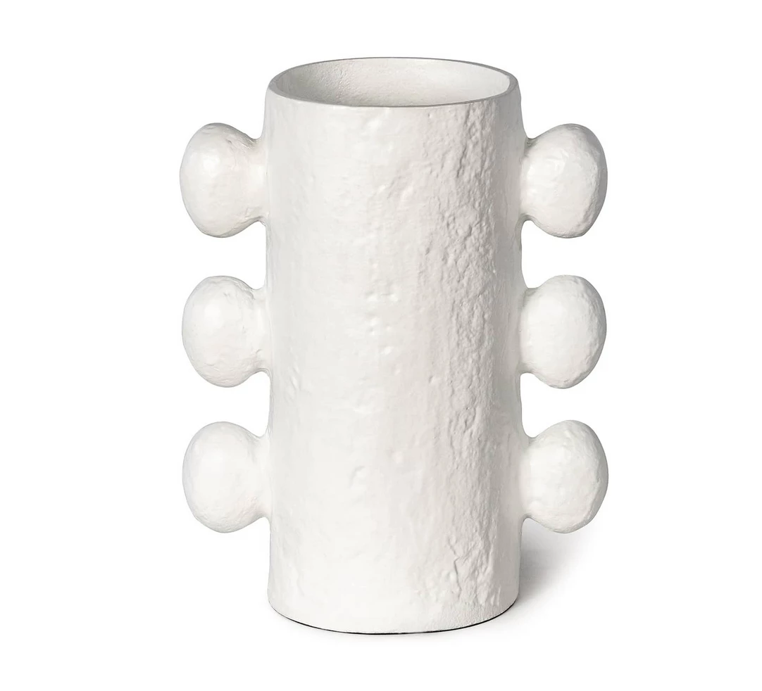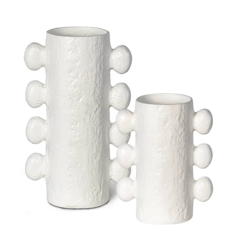 The Sanya Metal Vases are rich looking with primitive, sculptural beauty. With a matte white, paper maché finish these are the perfect match for a modern space with natural elements or anywhere a bit of bold, hand-crafted style is needed.
