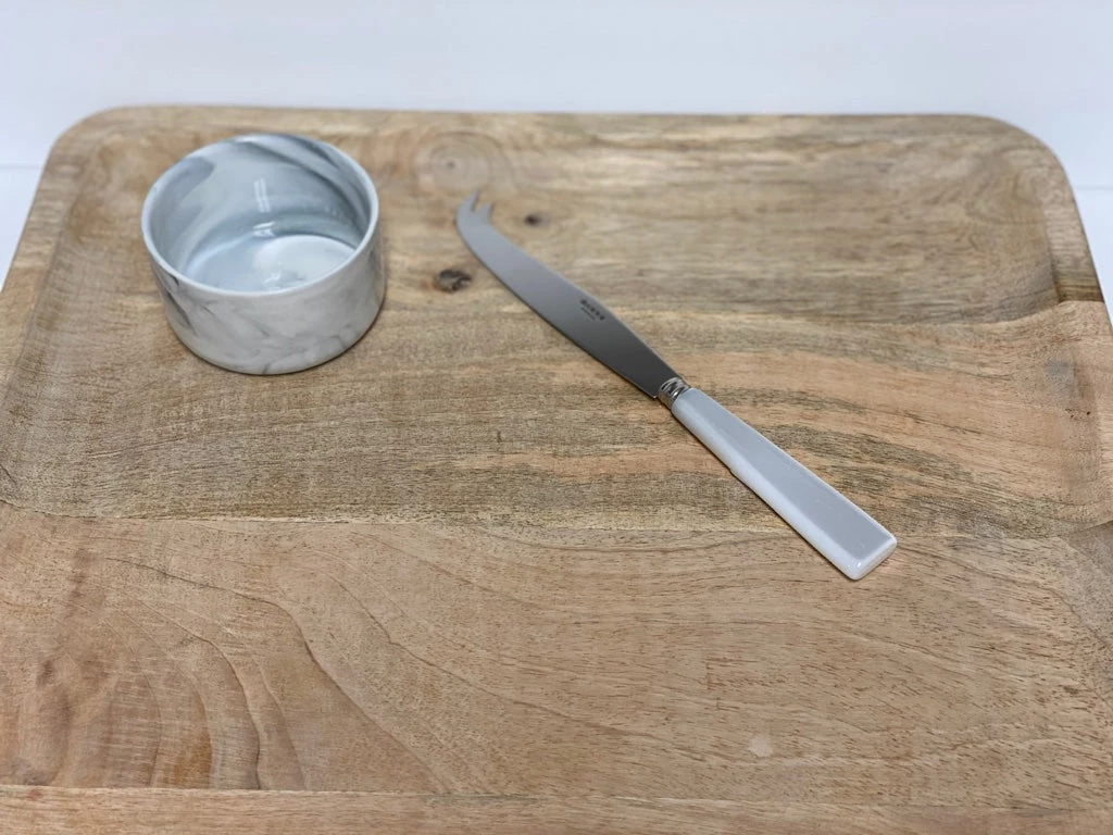 The Natura cheese knife has a dual purpose: the blade is used for cutting through small blocks of cheese while the curved tip can be used to pick up the slices. Ideal for semi-hard cheese and soft cheeses.