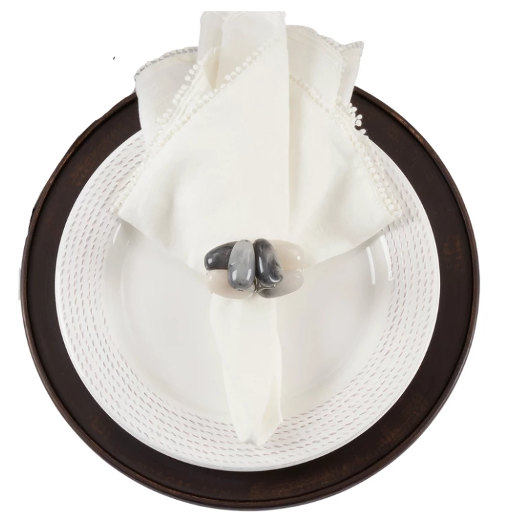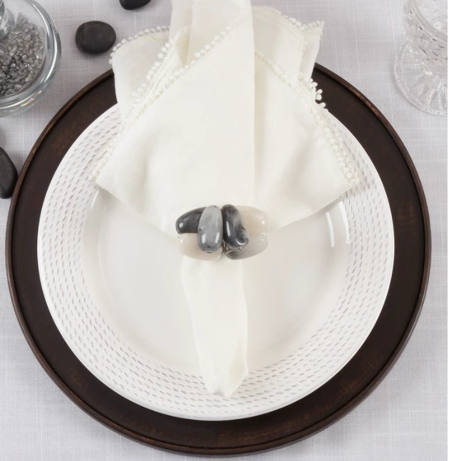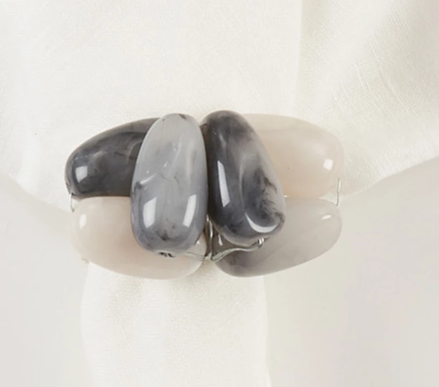 A perfect mix of grey and neutral stones come together for an easy to match ring set that is a great looking addition to an indoor or outdoor tablescape