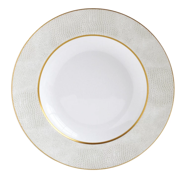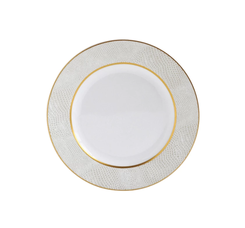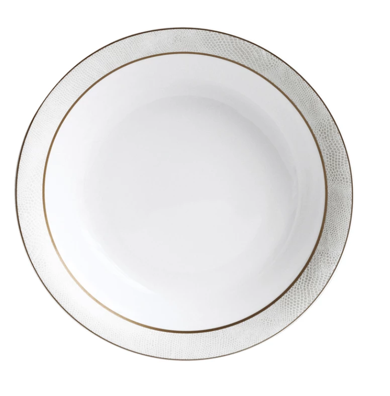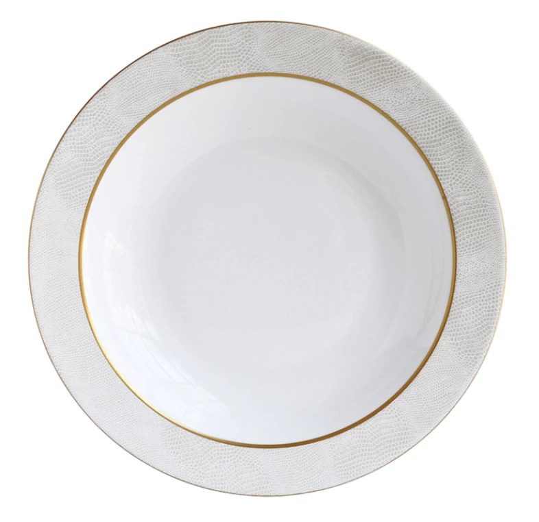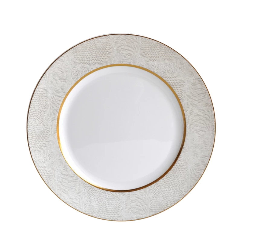 An intricately embossed finish evokes the captivating look and texture of snake skin in this eye-catching collection from Bernardaud.